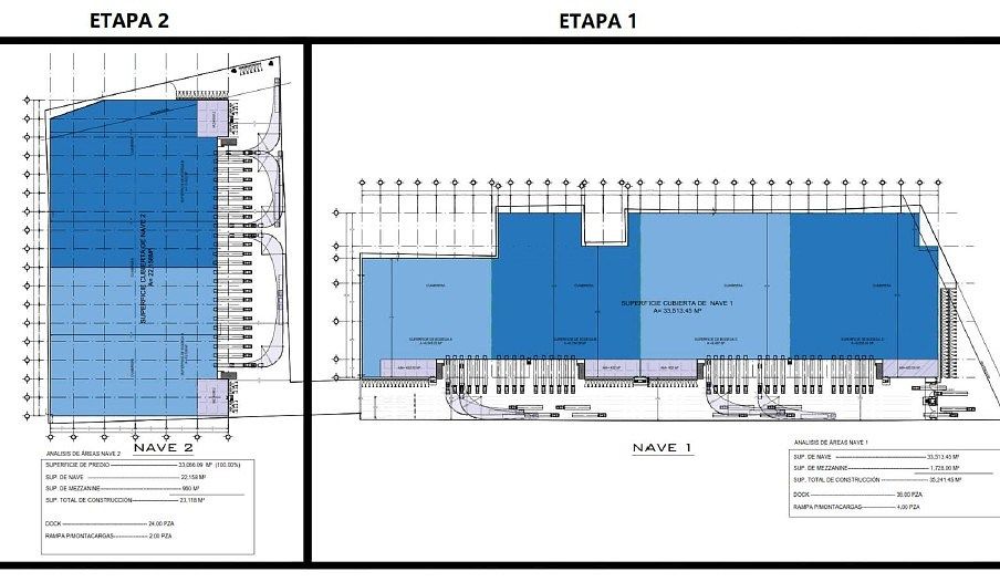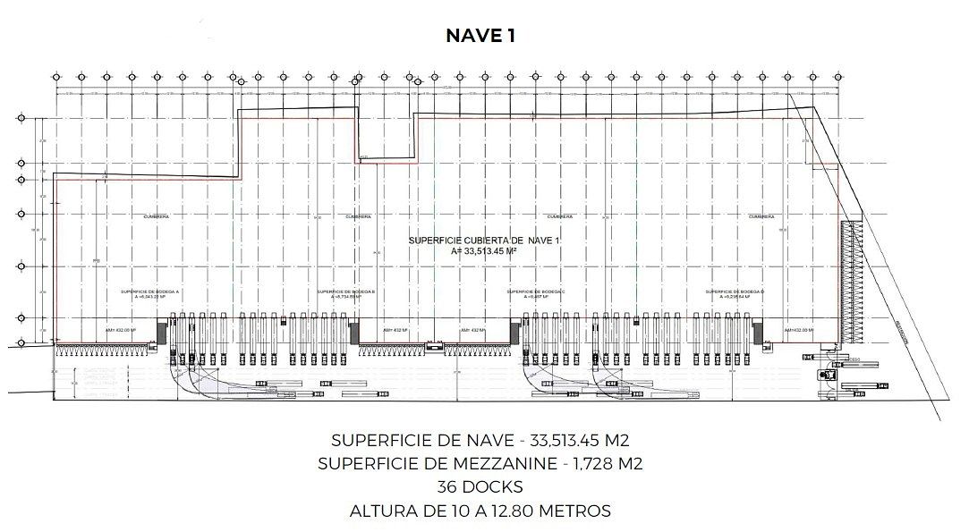Nave 1: 33,513.45 M2, de Mezzanine – 1,728 M2