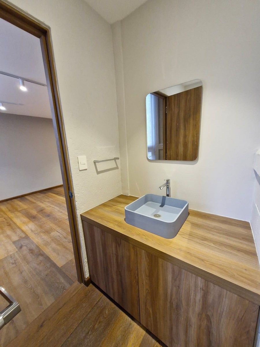Cuatro oficinas muy iluminadas, cada una con medio baño privado, con interfon y TOTALMENTE recién remodeladas. En primer piso. Listas para llegar sólo a instalarse!!